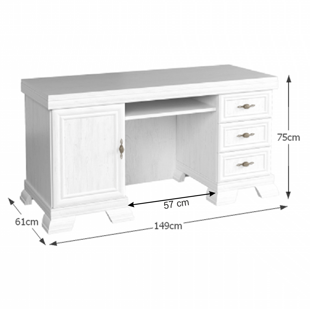 Acest birou elegant, cu finisaj alb, adaugă un aer de rafinament și calm oricărei încăperi, fiind ideal pentru birouri de acasă, birouri de lucru sau spații de studiu. Designul său clasic și detaliile atent lucrate conferă un aspect sofisticat, potrivit unui decor modern sau tradițional.
