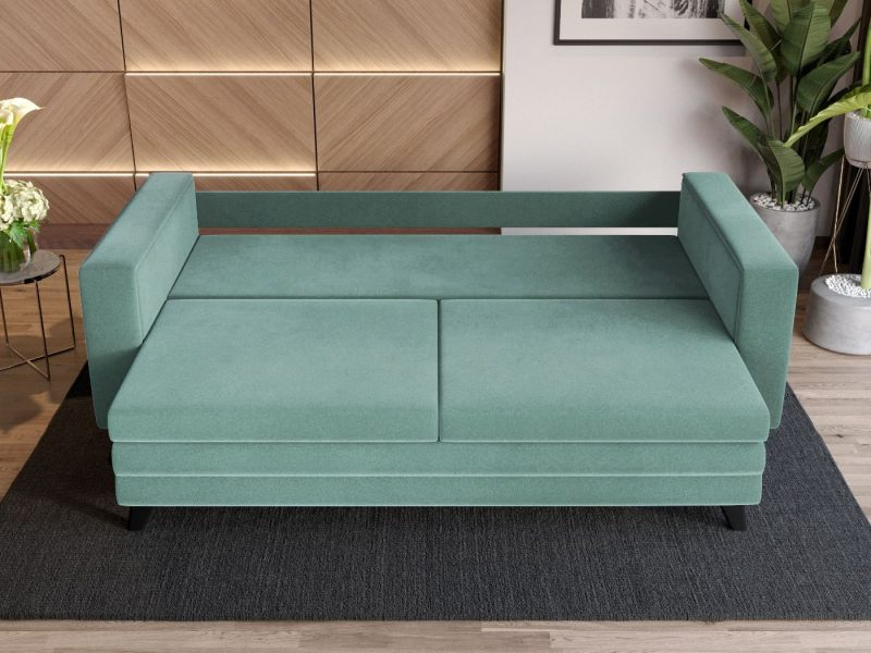 Sezutul si extensia canapelei sunt pe relaxa (arcuri elicoidale și poliuretan).