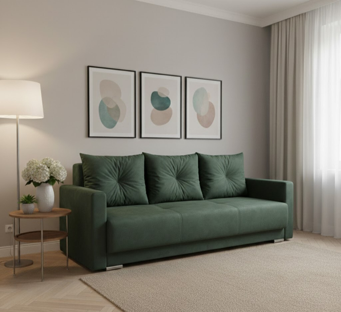 Spatiu de depozitare tip lada pe intreaga lungime a canapelei.