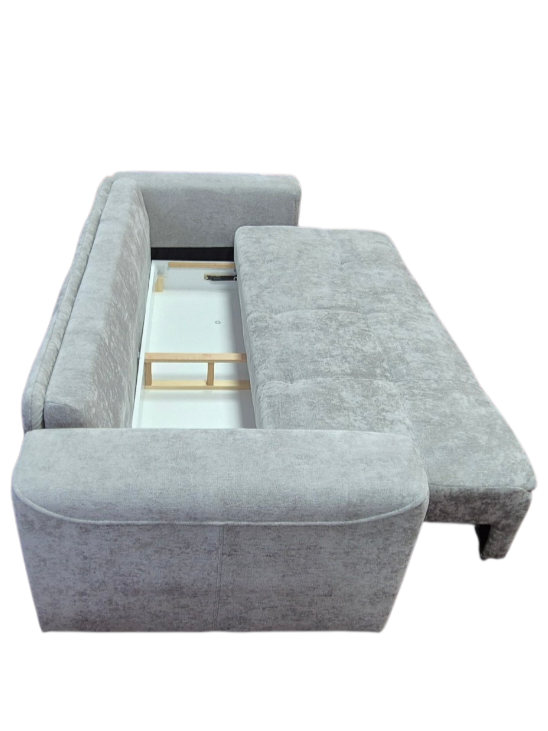 Are o structura rezistenta , transformându-se într-un pat de dormitor de 160 cm lățime pe 190 cm lungime, cu saltele confortabile, din spumă și arc sinusoidal.