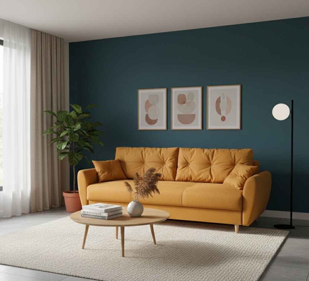 Olivia este o canapea modernă, caracterizată de picioarele sale inalte din lemn de fag, care adaugă stil și eleganță designului său.