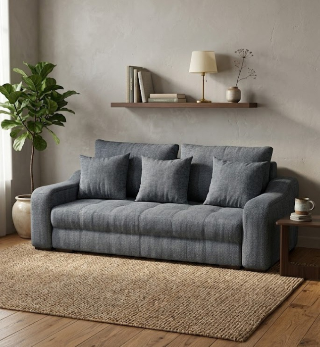 Canapeaua Atena se remarcă prin suprafața de dormit record, cu o lățime de 170 cm. Aceasta depășește dimensiunile unui pat dublu standard (160 cm), oferind un confort imens fără a ocupa spațiul permanent al unui pat fix în living.
