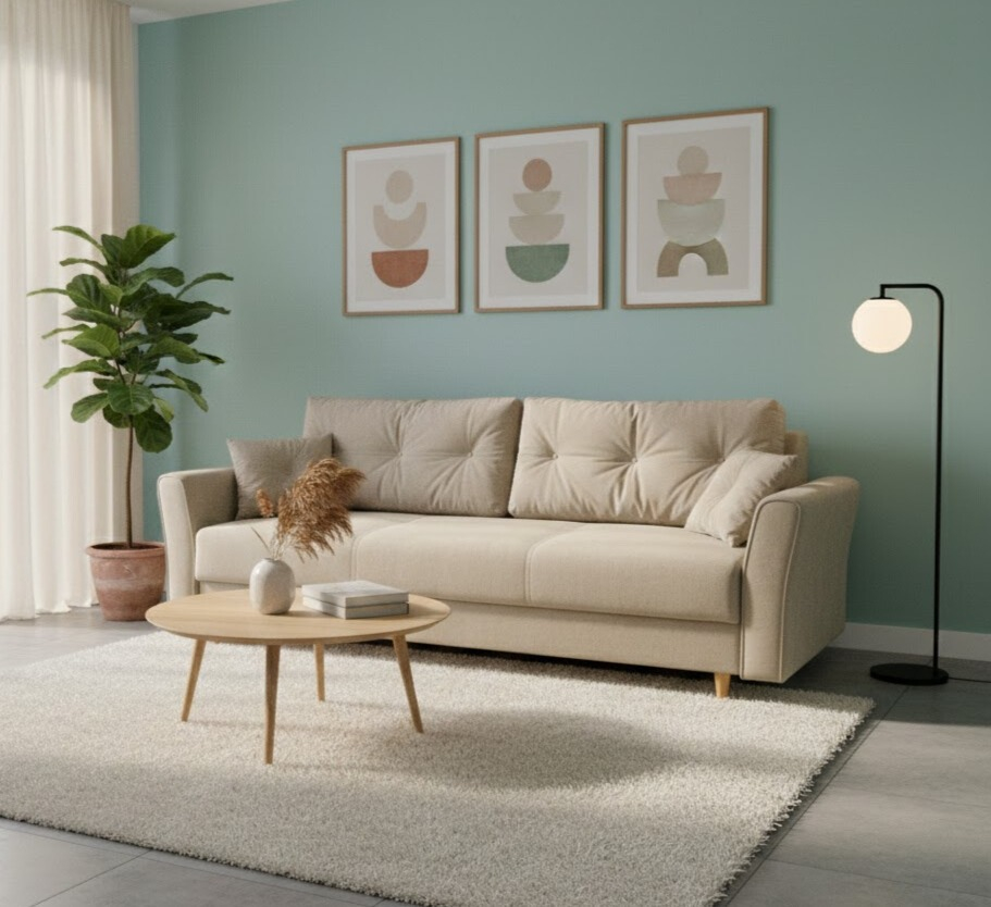 Lotus este o canapea modernă, caracterizată de picioarele sale inalte din lemn de fag, care adaugă stil și eleganță designului său.