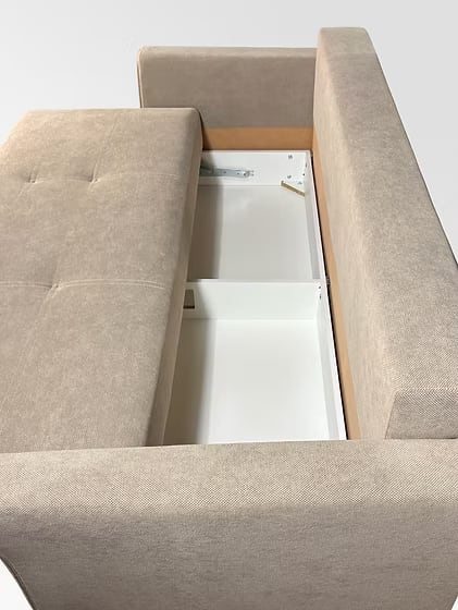 Salteaua relaxa, construită pe o plasă de arcuri, asigură un suport optim și un confort sporit in timpul utilizării. Accesoriile incluse, precum cele patru perne decorative și lada de depozitare spațioasă, completează funcționalitatea și aspectul estetic al canapelei Lotus.