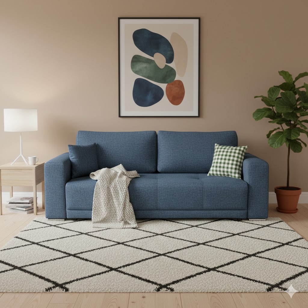 Canapea BERNA B extensibila 3 locuri cu lada depozitare stofa albastra Neve 74