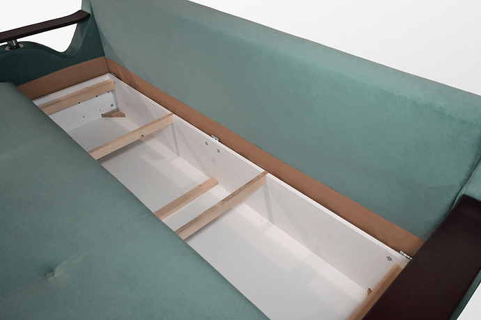 Spatiu de depozitare tip lada pe intreaga lungime a canapelei.