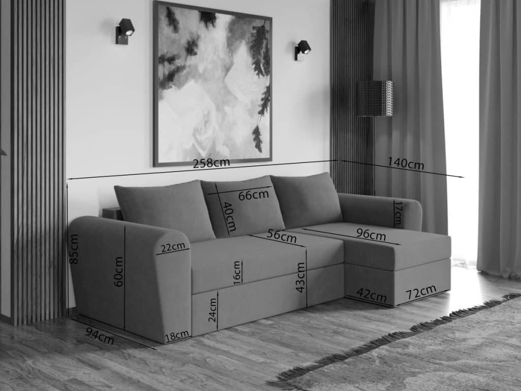 Coltarul Word este un coltar extensibil cu lada pentru living clasic si usor elegant. Combina stilul si confortul, fiind alegerea potrivita pentru locuinta dumneavoastra. Bratele rotunjite confera, pe langa un aspect deosebit, si o sustinere placuta, iar cele 3 perne sunt detasabile. Lada incorporata este ideala pentru depozitarea lenjeriei sau a altor obiecte.