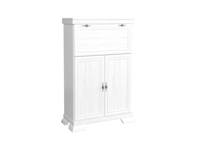 Fabricată din materiale durabile, cu finisaj alb antichizat ce imită textura lemnului, comoda adaugă luminozitate și căldură spațiului în care este amplasată: usi din MDF infoliat, carcasa din PAL melaminat de 16 mm, manere metalice.