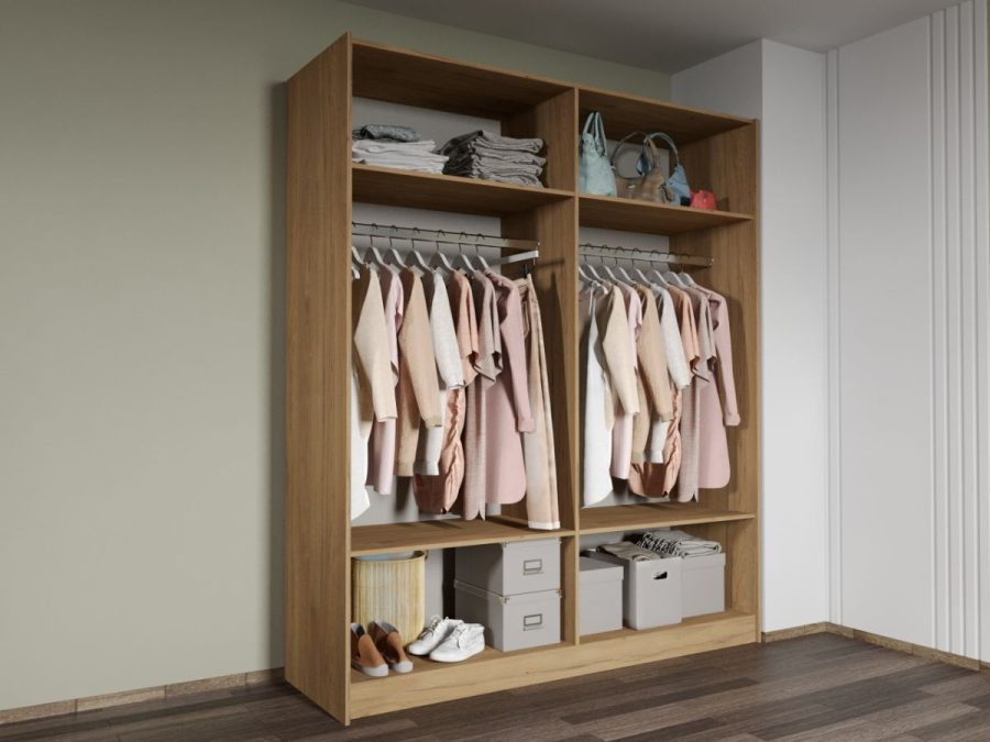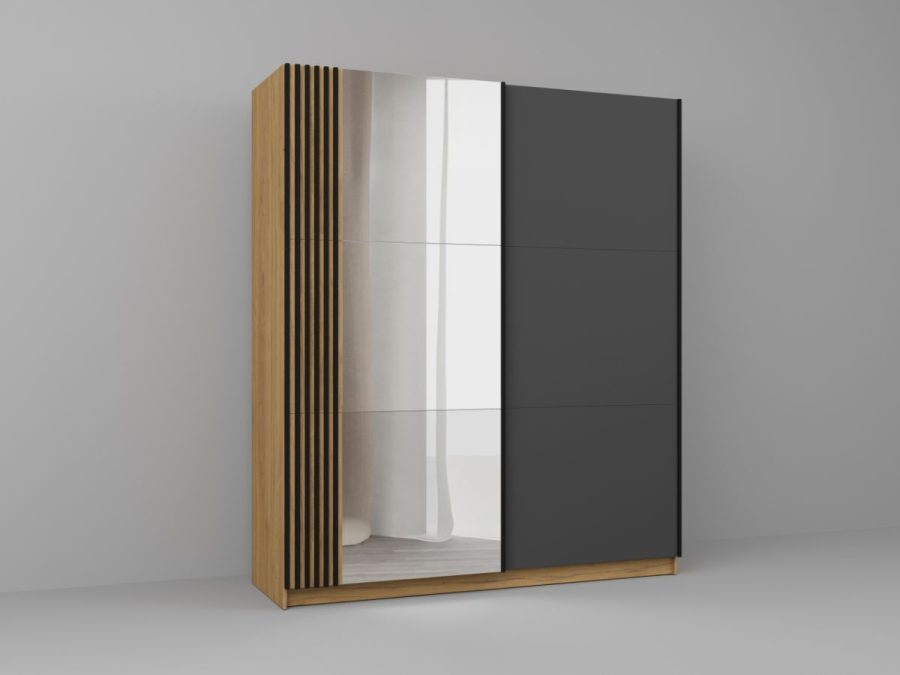 Dulap 2U – L 180,6 x A 59,9 x H 212 cm - Cu 2 usi glisante, compartimentat cu 6 polite si 2 bare de umerase.
