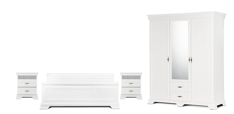 Colecția KORA include o gamă variată de piese – paturi, dulapuri, comode, noptiere și accesorii – toate realizate cu aceeași atenție la detalii: fronturi profilate, mânere metalice aurii și proporții armonioase. Designul unitar permite o amenajare coerentă și versatilă, indiferent de configurația spațiului.