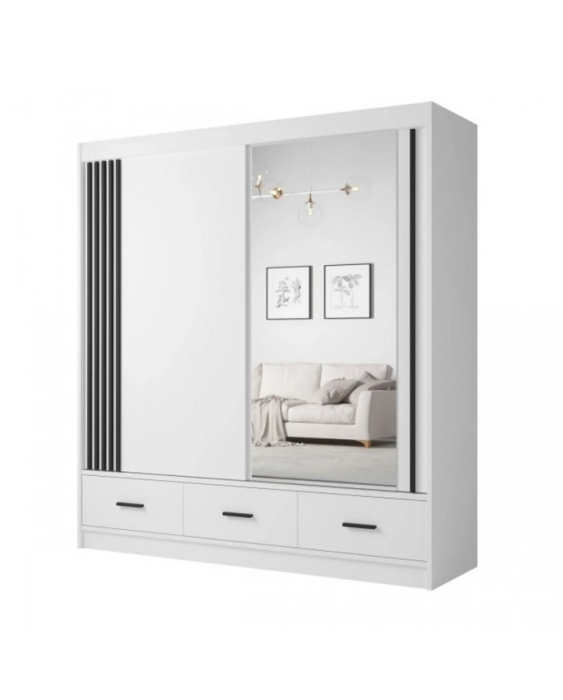 Oglindă mare pe una dintre uși, ideală pentru verificarea ținutelor și pentru a adăuga senzația de spațiu și luminozitate.