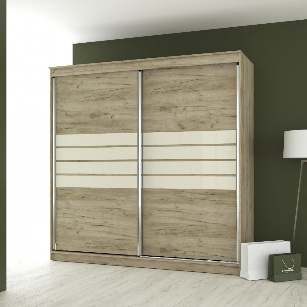• usile sunt culisante, din pal melaminat Stejar Gri Craft k002, cu ornamente din oglinda deschisa la culoare
