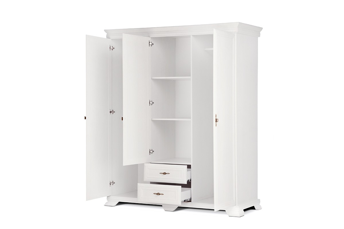Acest dulap impunător, finisat într-un alb elegant, este combinația perfectă între design clasic și utilitate modernă. Cu spațiul său generos și compartimentarea inteligentă, este ideal pentru organizarea completă a garderobei tale.