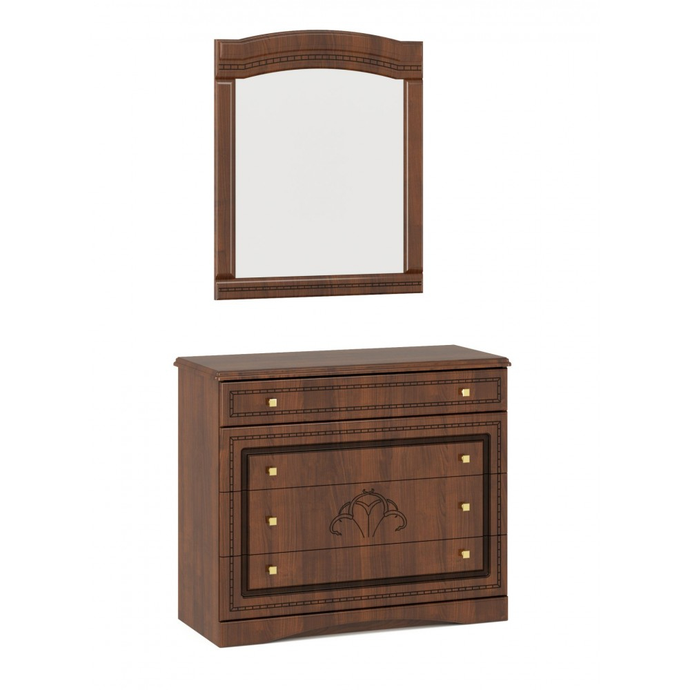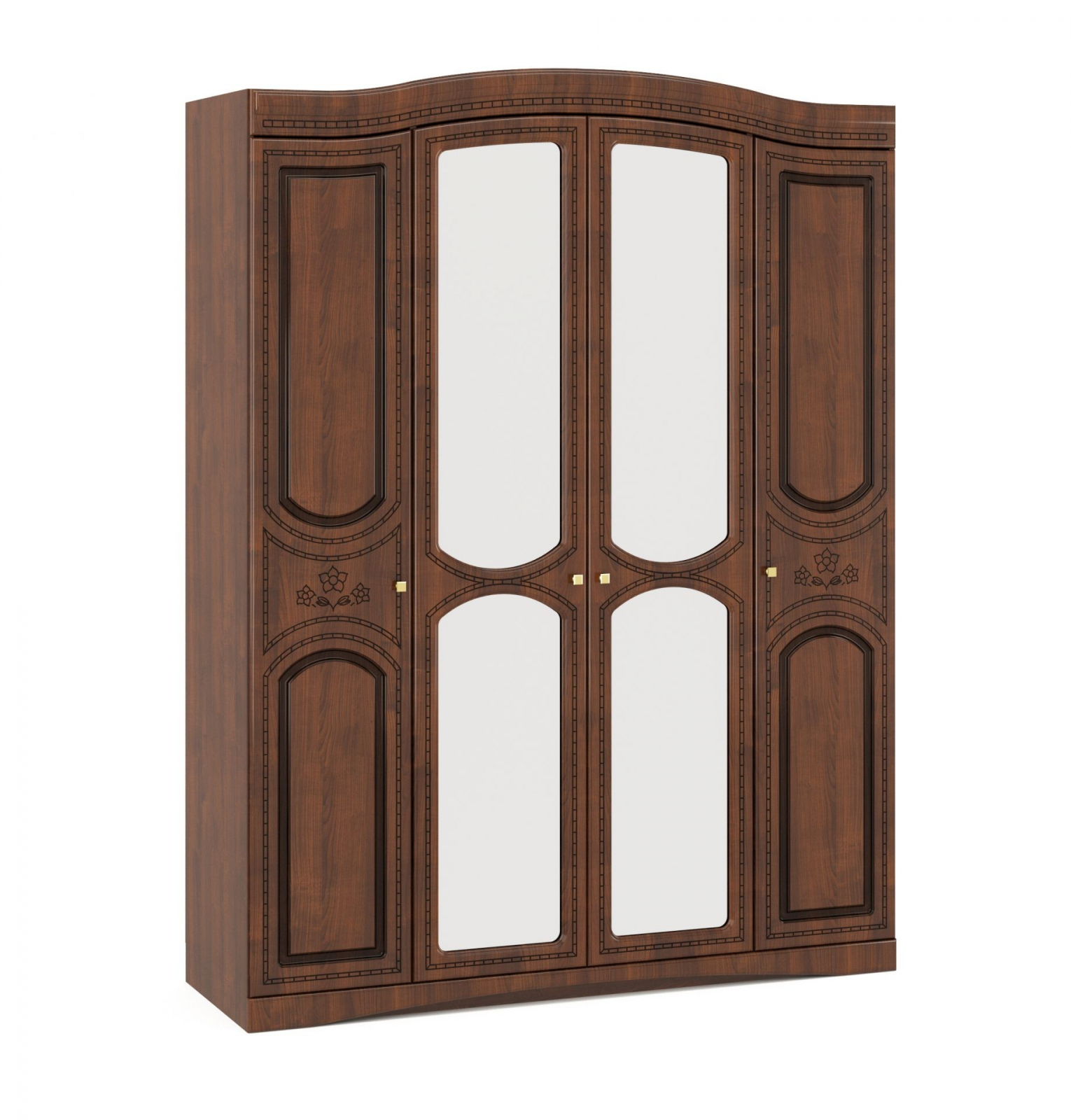 Materiale: PAL melaminat Visina cu grosimea de 16 mm pentru corp si MDF furniruit cu grosimea de 16 mm pentru fronturi. Oglinda pe cele 3 usi din mijloc.