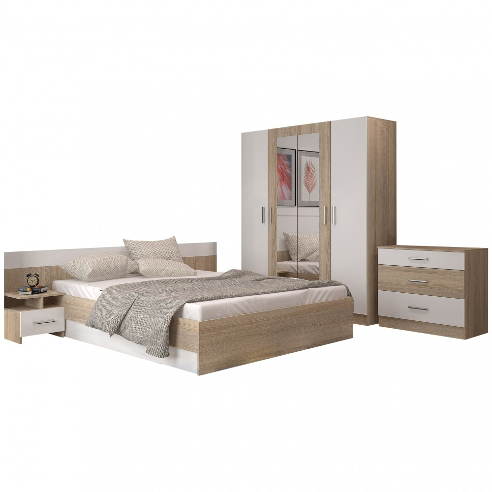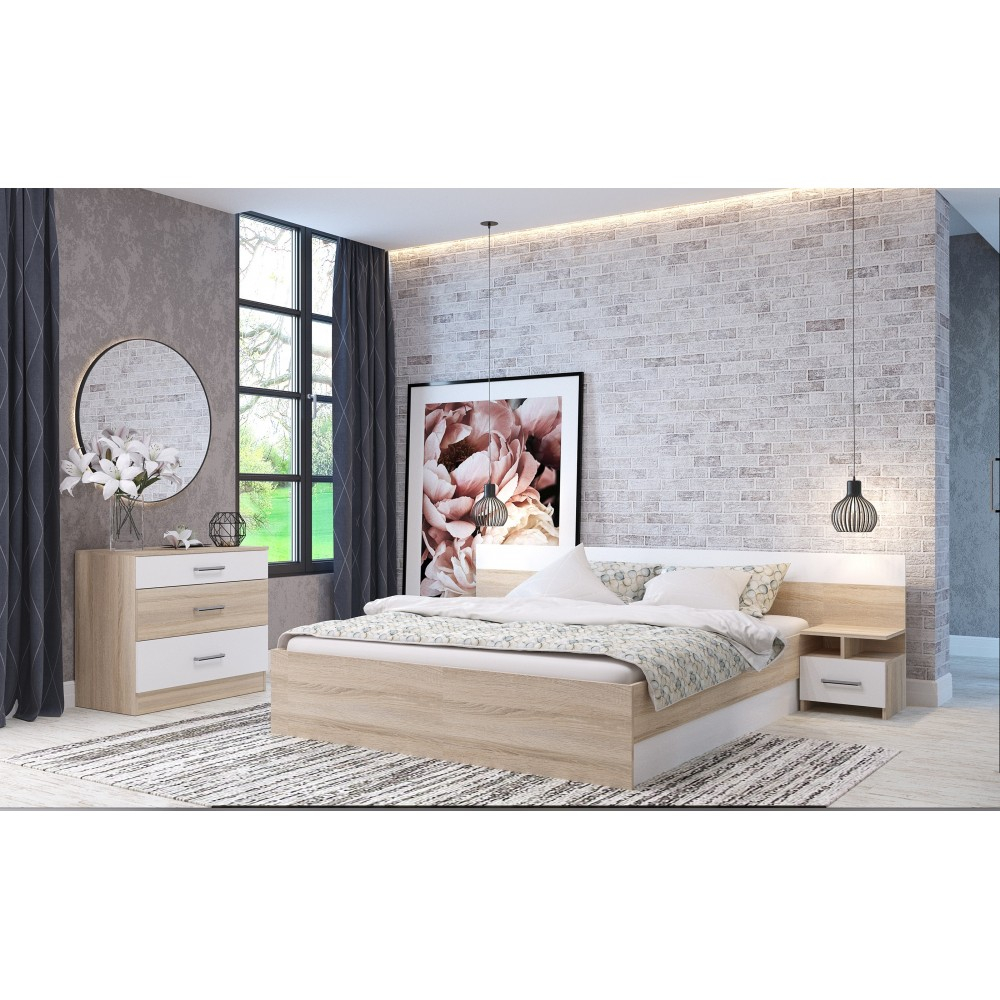 Materiale:  PAL melaminat Stejar Sonoma pentru corp, iar fronturile sunt o combinatie de Pal Stejar Sonoma si Pal Alb.