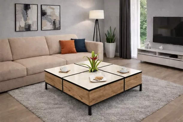 Măsuța de cafea AMETIST este soluția perfectă pentru un living organizat și stilat: este modernă, multifuncțională si inteligent compartimentată.