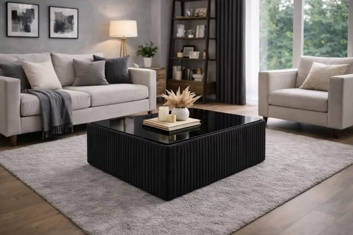 Masuta cafea tapitata LIMA negru si blat MDF negru lucios