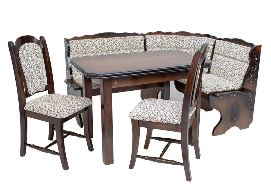 Bancheta si masa extensibila sunt demontabile, iar scaunele au o constructie fixa.