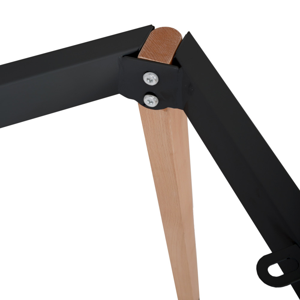 Picioarele din lemn de fag lacuite, sunt fixate pe o rama metalica rigida, oferind rezistenta si stabilitate mesei.