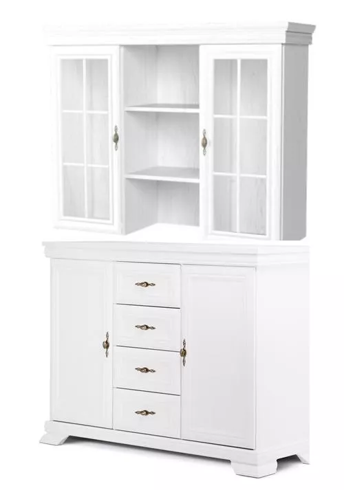 Această vitrină bufet spațioasă, finisată într-un alb luminos, combină frumusețea clasică cu funcționalitatea modernă, fiind alegerea ideală pentru a-ți păstra și expune obiectele favorite cu rafinament.