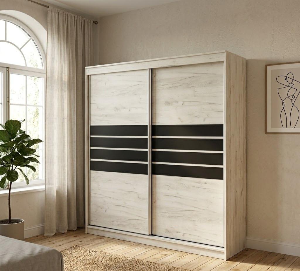 Dressingul are o lățime de 200 cm, oferind un spațiu generos de depozitare. Înălțimea și adâncimea sunt optimizate pentru a se potrivi în majoritatea apartamentelor din Bârlad, asigurând un aspect modern fără a ocupa tot spațiul din dormitor.