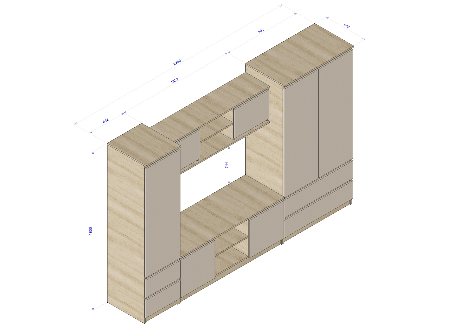 - Corp Inferior TV (Comoda): Lungime 135 x Adancime 51 x Inaltime 54cm
