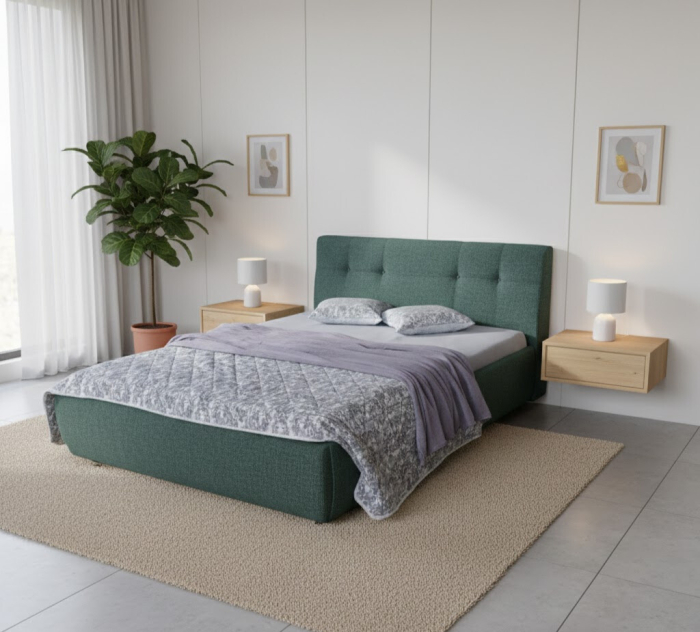 Patul tapitat Dana 160 x 200 cm este realizat pe structura si cadru de lemn cu intarituri unghiulare metalice la colturi care ii garanteaza rezistenta in timp si stabilitatea.