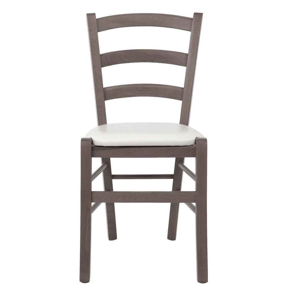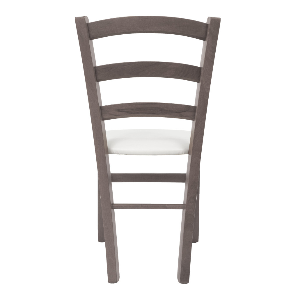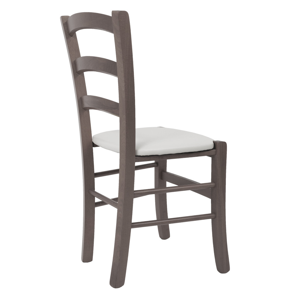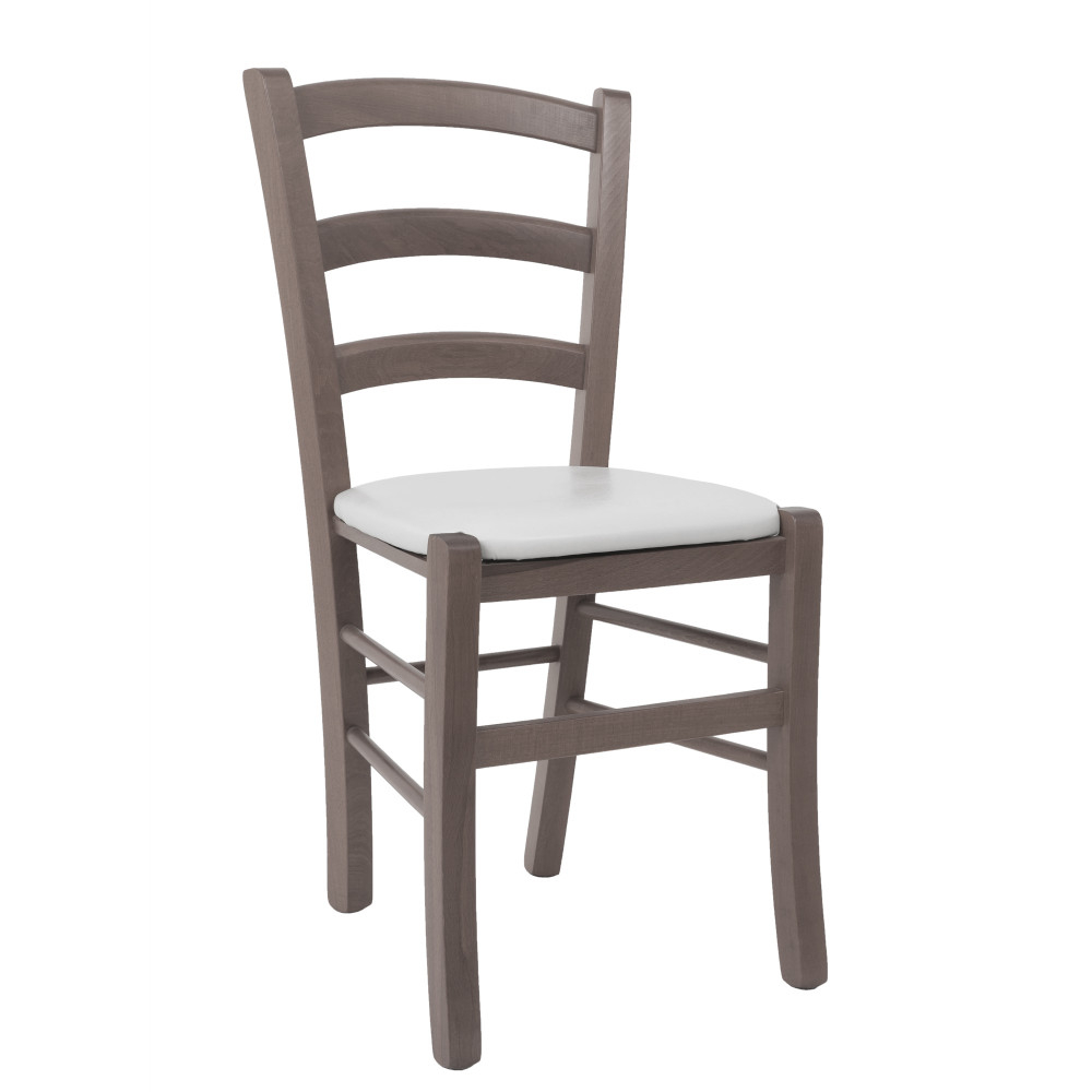 Scaunul din lemn de fag vopsit in culoarea gri, se incadreaza perfect in decorul unei sali de petreceri sau intr-o bucatarie rustica.