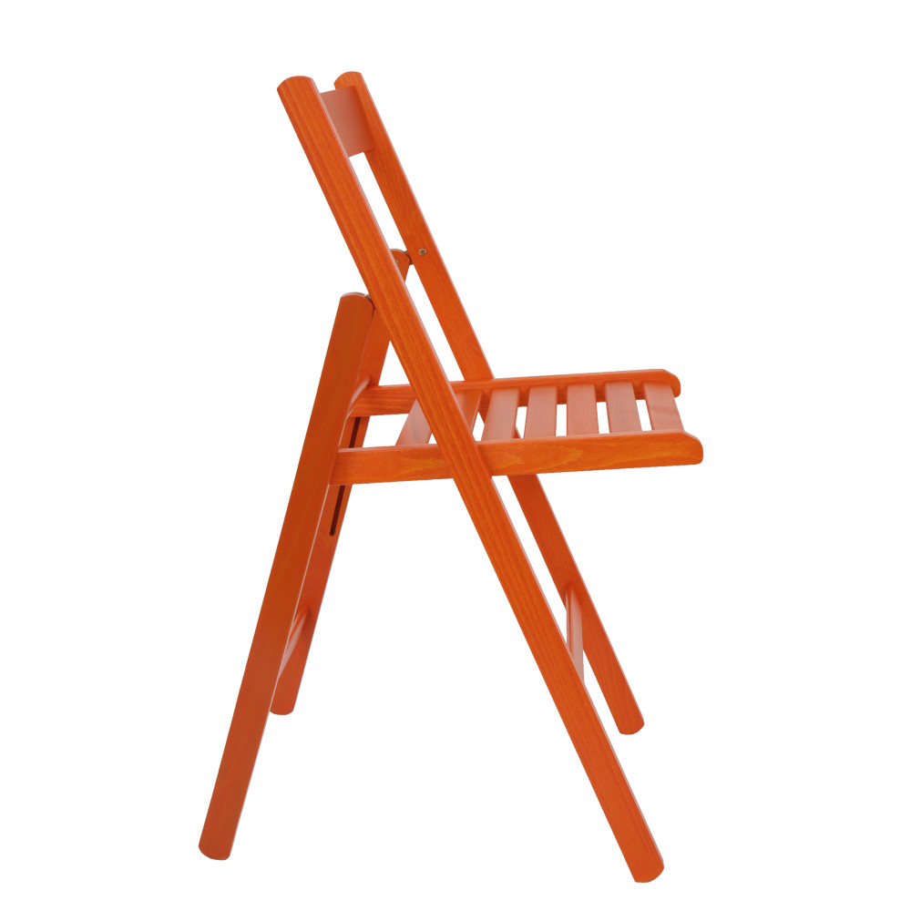 Scaunul pliant din lemn de fag baituit in culori vii, este solutia practica pentru spatii mici de luat masa sau pentru evenimente cu multe persoane.