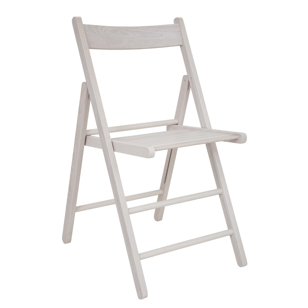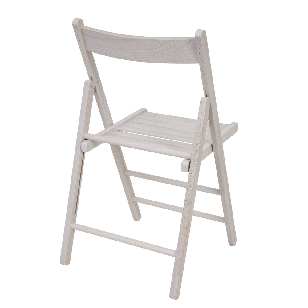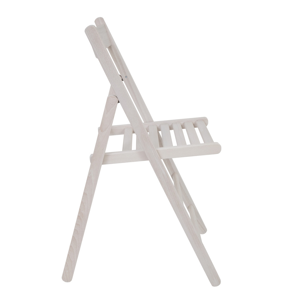 Scaunul pliant din lemn de fag baituit in culoarea crem laptos, este solutia practica pentru spatii mici de luat masa sau pentru evenimente cu multe persoane.