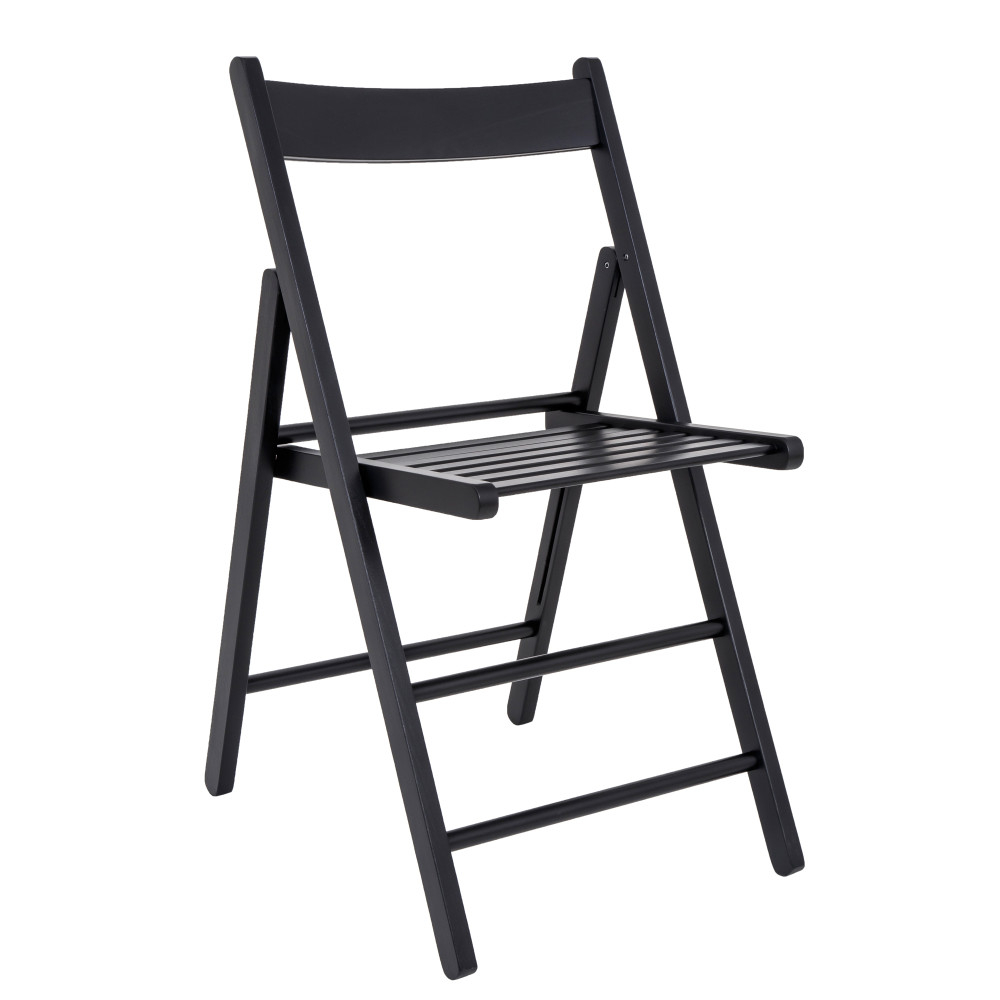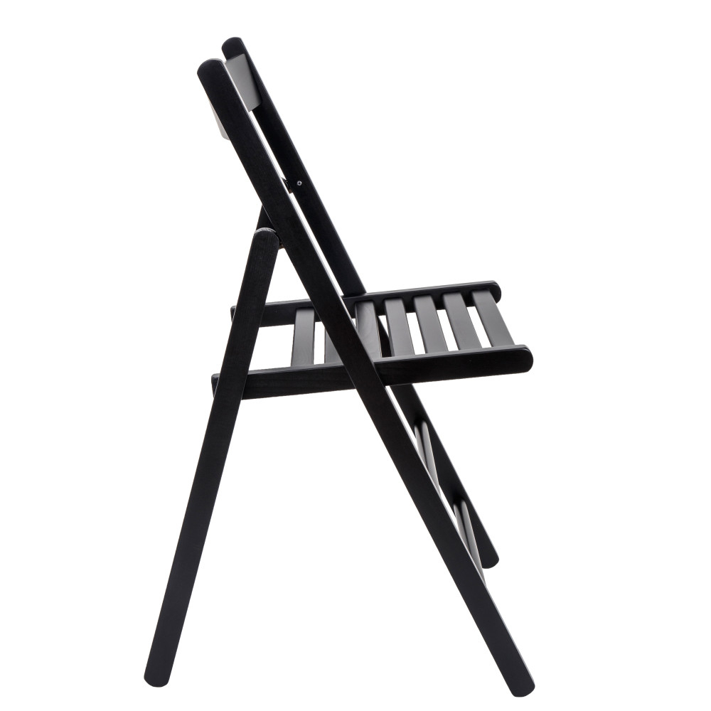 Scaunul pliant din lemn de fag baituit in culoare neagra, este solutia practica pentru spatii mici de luat masa sau pentru evenimente cu multe persoane.
