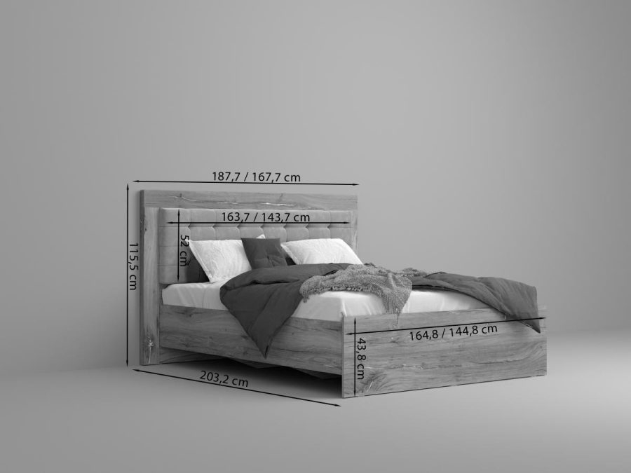 Pat Dormitor Tapitat Gri - Patul matrimonial cu finisajul Flagstaff Oak, mentine linia de design al setului de dormitor. Tapiteria gri din stofa ofera si un plus de frumusete si eleganta, pe langa confortul fizic. Cantul aplicat pe capatul mare al patului este unul de 32mm.