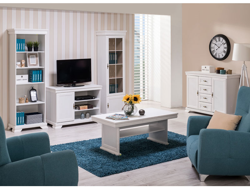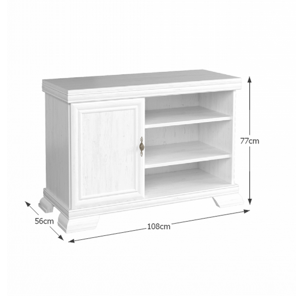 Această comodă TV este alegerea ideală pentru cei care doresc să îmbine eleganța designului clasic cu utilitatea unei piese de mobilier versatile. Cu o construcție robustă, finisaj alb antic și detalii decorative rafinate, comoda adaugă un plus de stil oricărui living.