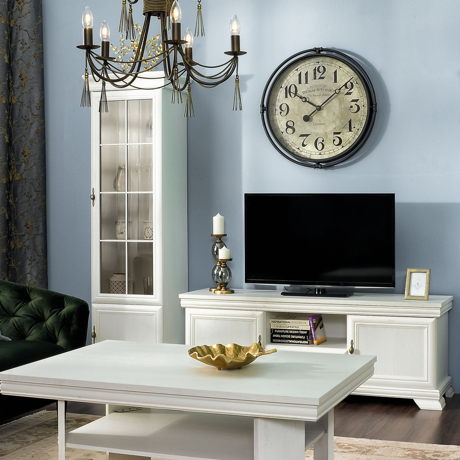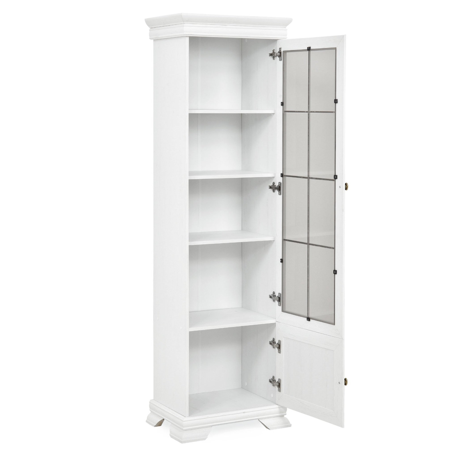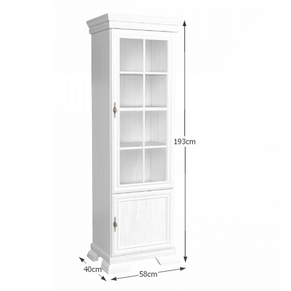 Această vitrină în nuanță albă, cu un design clasic, este soluția ideală pentru a expune și organiza cu stil obiectele tale preferate. Perfectă pentru living, dining sau hol, vitrina adaugă un plus de rafinament și lumină spațiului în care este amplasată.