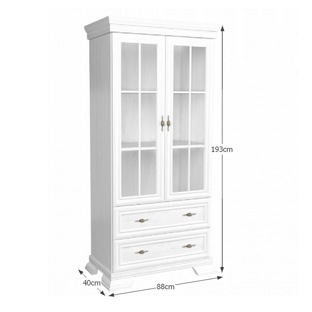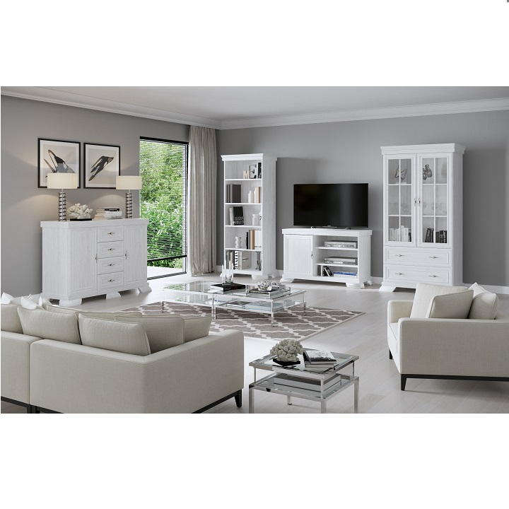 Această vitrină spațioasă, finisată într-un alb luminos, combină frumusețea clasică cu funcționalitatea modernă, fiind alegerea ideală pentru a-ți păstra și expune obiectele favorite cu rafinament.